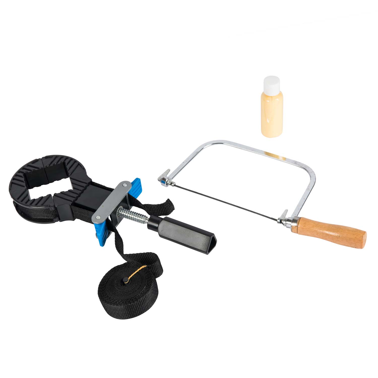 Our Newel Post Cladding Fixing Kit is designed to assist you in the installation and fitting of our custom oak newel post cladding kit. With three Newel Post Cladding Band Clamps, 3 small tubew of Titebond Wood Glue, and a coping saw, this kit provides you with the essential tools to achieve a seamless and professional installation. The band clamps ensure secure and reliable positioning of the cladding components, while the high-quality wood glue guarantees a strong bond. Additionally, the coping saw enables precise scribing of the oak cladding to match existing elements of your staircase.
